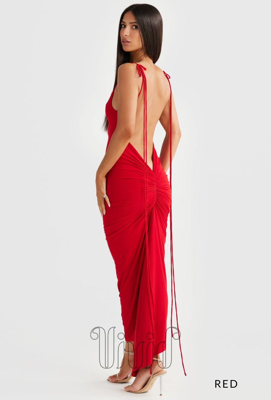 This stunning dress is crafted from 2 layers of high quality stretch jersey fabric and features elongated strings and gathered back detail. This super flattering design also features an ultra low back & a classic neckline. The Azari Midi is a show stopper!