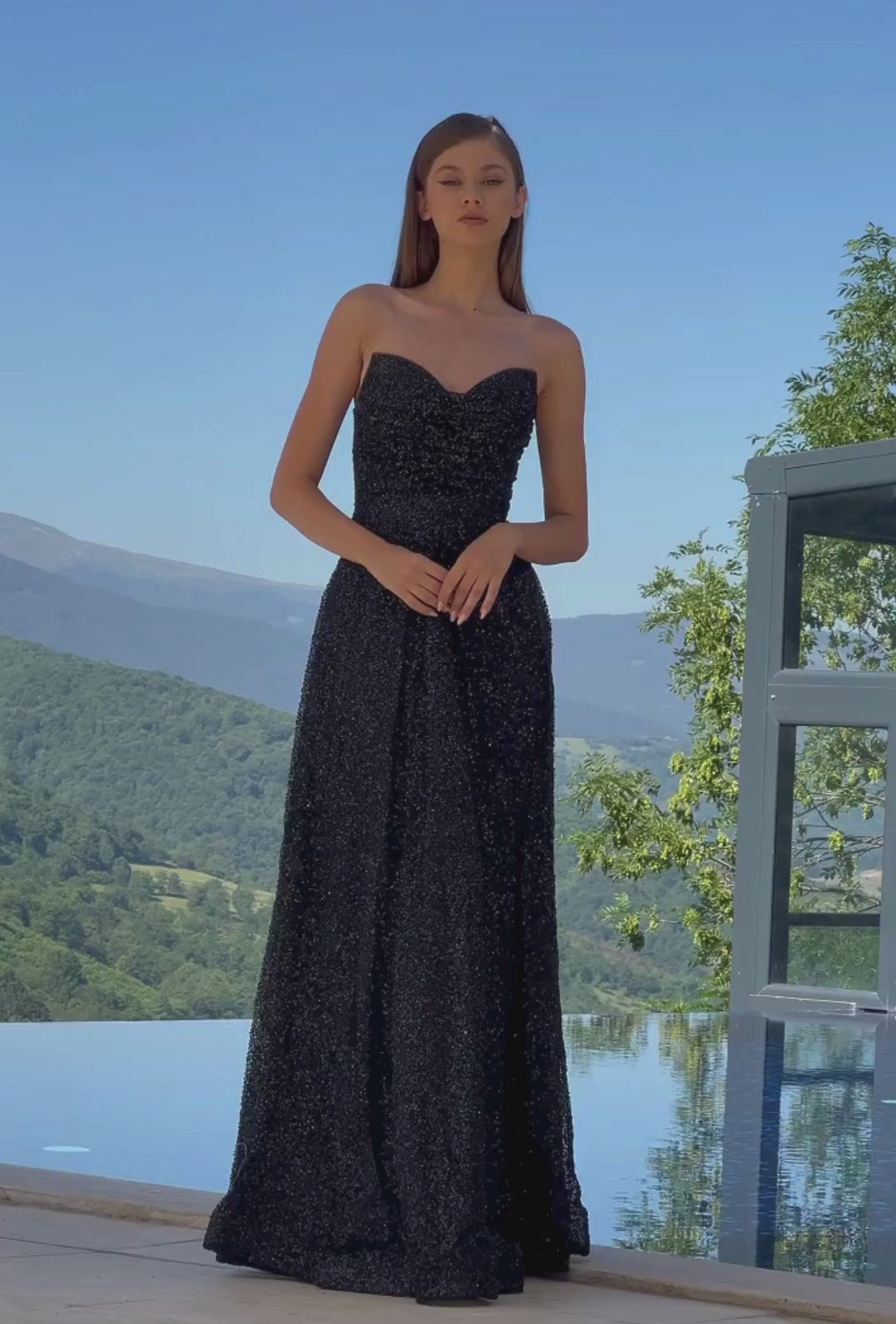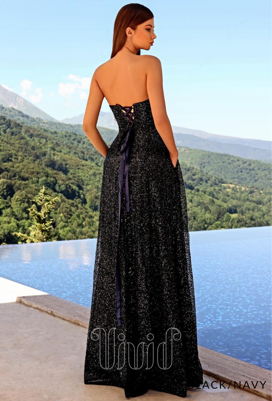 Step into glamour with the ethereal Zoey Sequin Ball Gown, crafted from exquisite sequin and beaded tulle fabric for a dazzling, luminous effect. This strapless design showcases a boned bodice with flattering gather detail with an adjustable corset style ribbon back tie for a custom fit. The padded, ruched cups provide added support, while the gown’s flowing skirt creates a dreamy, graceful movement with every step. Fully lined for ultimate comfort, the Zoey Sequin Ball Gown is your perfect choice for making a radiant entrance at any glamorous occasion.