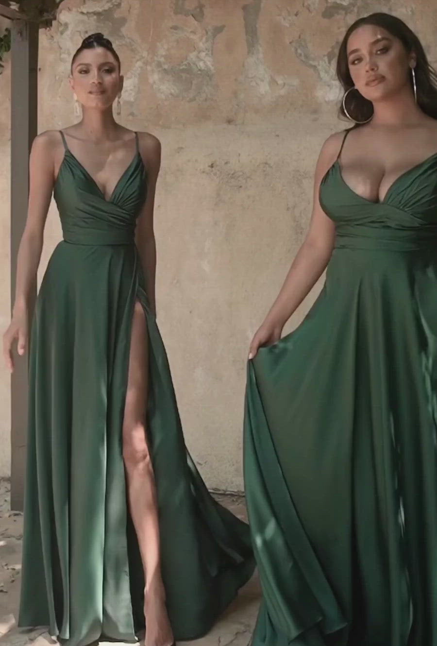 Classic and timeless, this romantic evening gown is a stunning piece that will flatter any body type. The dress is crafted from a soft satin fabrication and features a sweetheart neckline, gathered bodice and flowy skirt with an elegant leg opening.