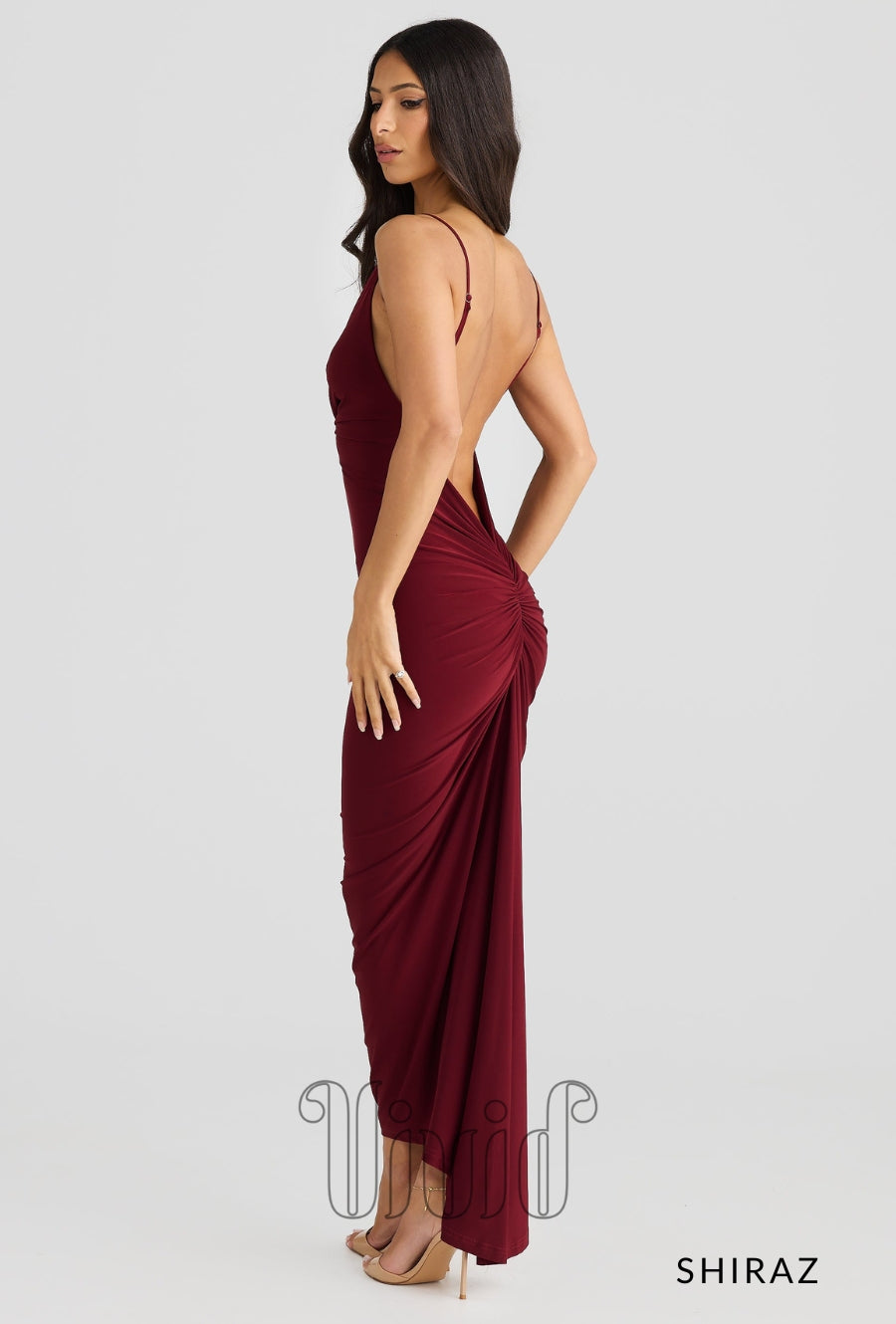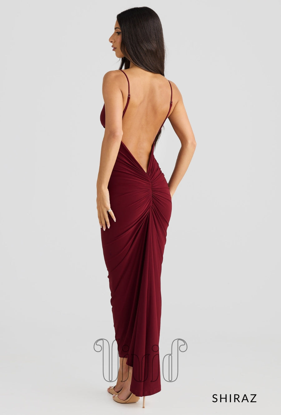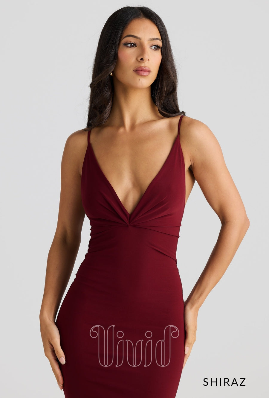 This sexy dress is crafted from two layers of stretch fabric. The Veronica is timeless. The dress features a plunging pleated neckline and gathered back skirt detail. This form fitted dress will be sure to get heads turning.