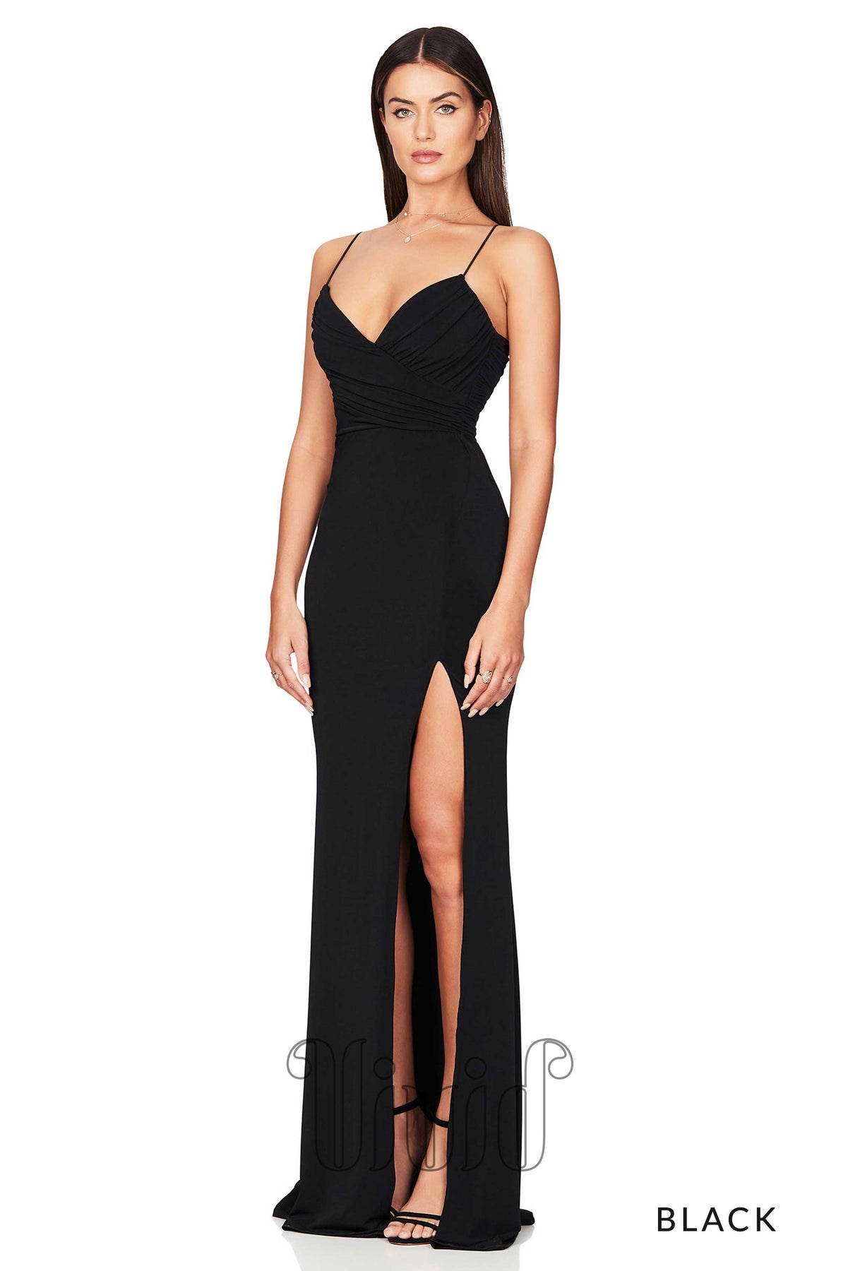 This slinky wrap front gown with exaggerated hem and high side split is crafted from a soft jersey and is fully lined. Adjustable straps. Invisible zipper at centre back featuring rose gold hardware. PROUDLY DESIGNED AND MADE IN AUSTRALIA.