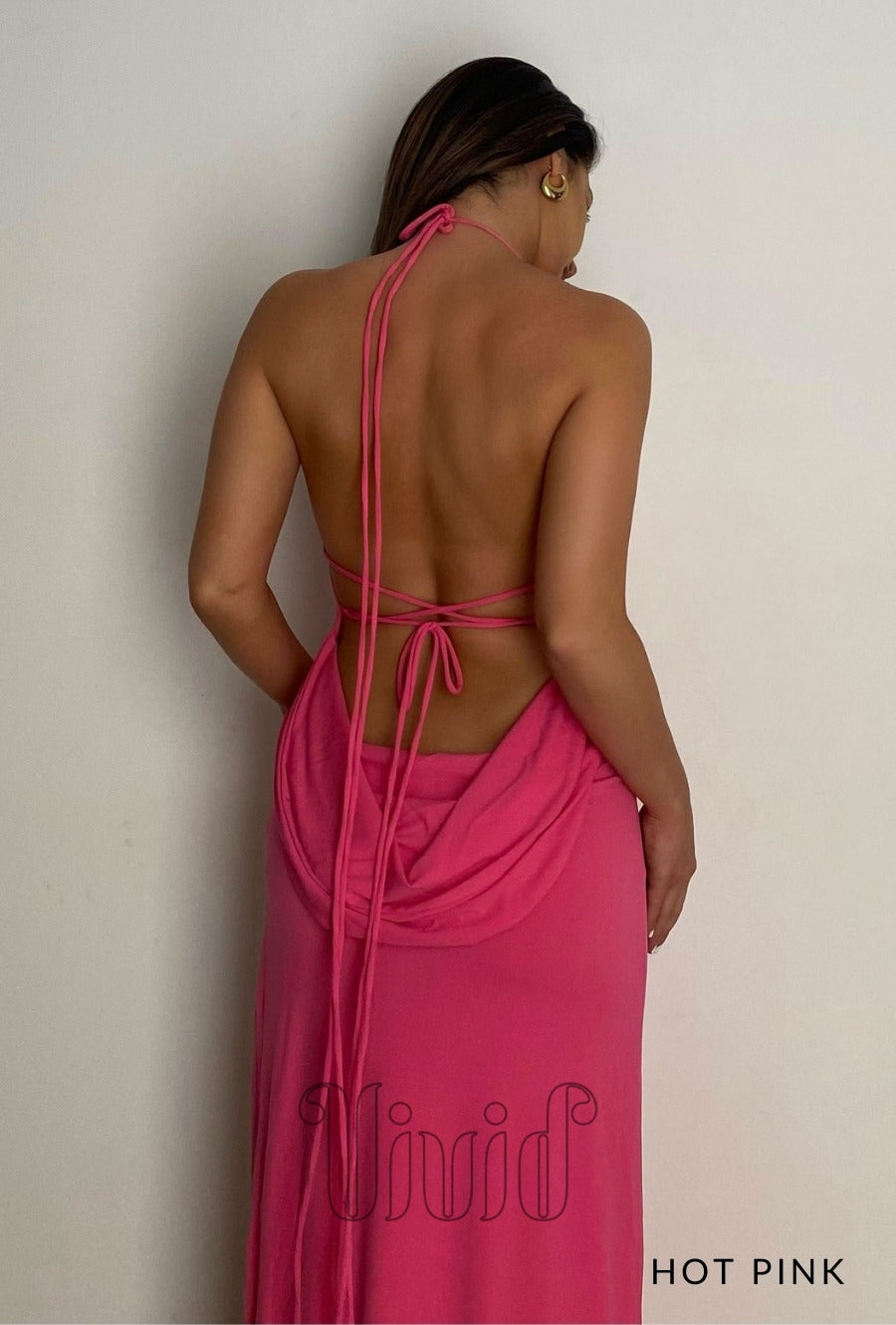 Melani The Label Marlo Gown in Hot Pink / Pinks