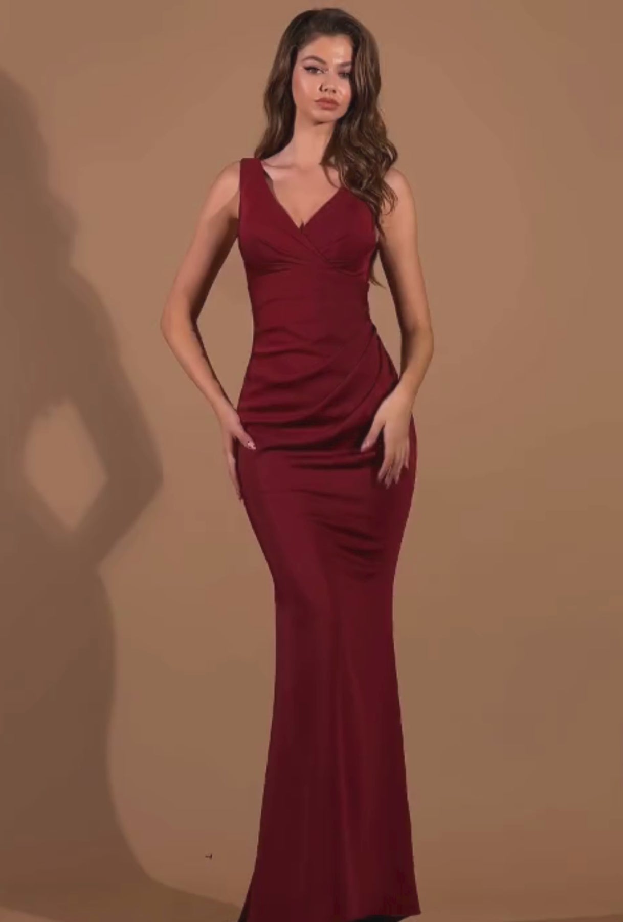 This stunning full length evening gown is crafted out of a soft suiting crepe and features a crossover style top with a boned bodice, flattering front drape detailing and a mermaid style skirt with small train.